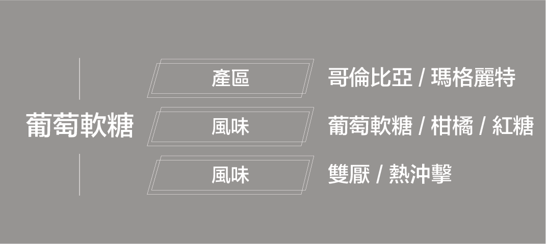 產區:哥倫比亞/瑪格麗特/葡萄軟糖