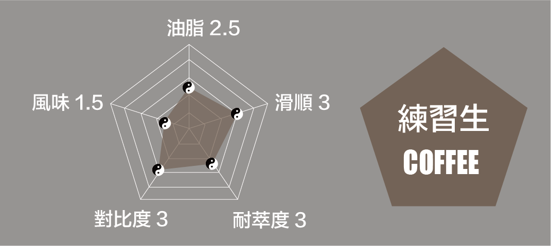 以深焙手法詮釋高油脂、濃稠滑順的質地,不僅適合日常義式萃取,也能呈現穩定厚實的拉花效果。